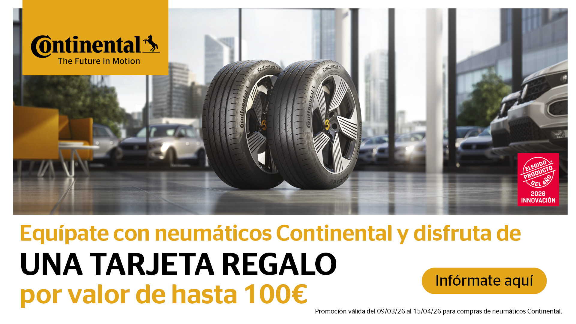Durante este periodo, los clientes que adquieran neumáticos Continental para turismos, 4x4 o furgonetas podrán conseguir un cheque carburante o una tarjeta regalo, tras registrar su compra en la web de la promoción.
